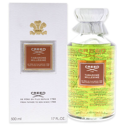 Launch year: 2000. Top notes: Bergamot, Tangerine. Heart notes: Ginger. Base notes: Sandalwood, Patchouli, Ambergris, Tobacco, Leather. Design house: Creed. Scent name: Creed Tabarome Millesime. Gender: Mens. Category: Perfume. SubType: EDP. Size: 17.0 oz. Barcode: 871854000887. Creed Mens Creed Tabarome Millesime EDP 17.0 oz Fragrances 871854000887. <br/><br/> This item is only valid for shipment in the Contiguous United States.