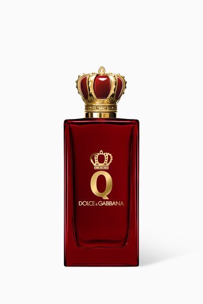 Q by Dolce&Gabbana Parfum is a bold and sensual scent built around its signature cherry note, now transformed into a luscious candied cherry. Housed in a striking red bottle crowned with the iconic royal cap, the fragrance blends juicy fruit with a heart of jasmine and a warm base of vanilla. A rich woody amber trail adds depth, creating a powerful and unforgettable finish.