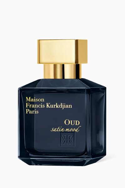 Maison Francis Kurkdjian's Oud Satin Mood Eau de Parfum conveys a shimmering and desirable Oriental mood. The captivating combination of natural oud from Laos with rose essence from Bulgaria creates an invigorating contrast, while the soft benzoin from Siam compliments the violet and vanilla accords.