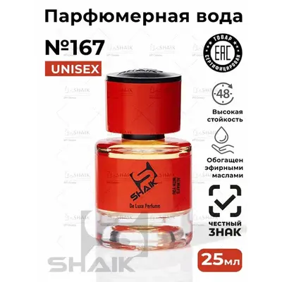 SHAIK - сертифицированная номерная парфюмерия. Ароматы SHAIK относятся к духам и обогащены эфирными маслами, благодаря чему имеют стойкость до 48 часов. SHAIK 167 - восхитительный, неповторимый, страстный и манящий парфюм для мужчин и женщин. Пирамида аромата начинает раскрываться деликатными нотами жасмина и шафрана. В сердце отчётливо слышны благородные, глубокие древесный янтарь и серая амбра. Восхитительный шлейф обеспечивает хвойный аккорд из нот еловой смолы и белого кедра. Верхние ноты: Жасмин, Шафран. Средние ноты: Древесный янтарь, Серая амбра. Базовые ноты: Еловая смола, Белый кедр. Вдохновлены Шейк 167 Bakarat 540 Духи начинают проявлять себя в полном объеме только после соприкосновения с химическим составом кожи. После нанесения парфюма на кожу мы слышим верхние ноты пирамиды, которые создают первое впечатление о композиции, вскоре с ними проявляются и смешиваются ноты сердца, раскрывая основной характер духов, позже в игру вступают основные ноты базы, которые определяют сущность всей парфюмерной композиции и придают глубокие оттенки аромату. Масляный парфюм для мужчин и женщин лучше всего наносить на чистую увлажненную кожу после душа, при этом не растирая композицию, для более продолжительного шлейфа духи рекомендуется наносить на самые горячие точки тела и в область волос (прически). Обращаем внимание, что для каждого отдельного человека, на раскрытие аромата и его стойкость влияют не только составляющие пирамиды парфюма и уникальные особенности кожи (химический состав), но и многие другие факторы окружающей среды (температура, влажность). Турецкие масляные духи могут оставлять следы на одежде, так как парфюмированный спрей для тела и парфюмерная вода содержат в составе эфирные масла. Храните духи в темном месте, подальше от источников тепла.